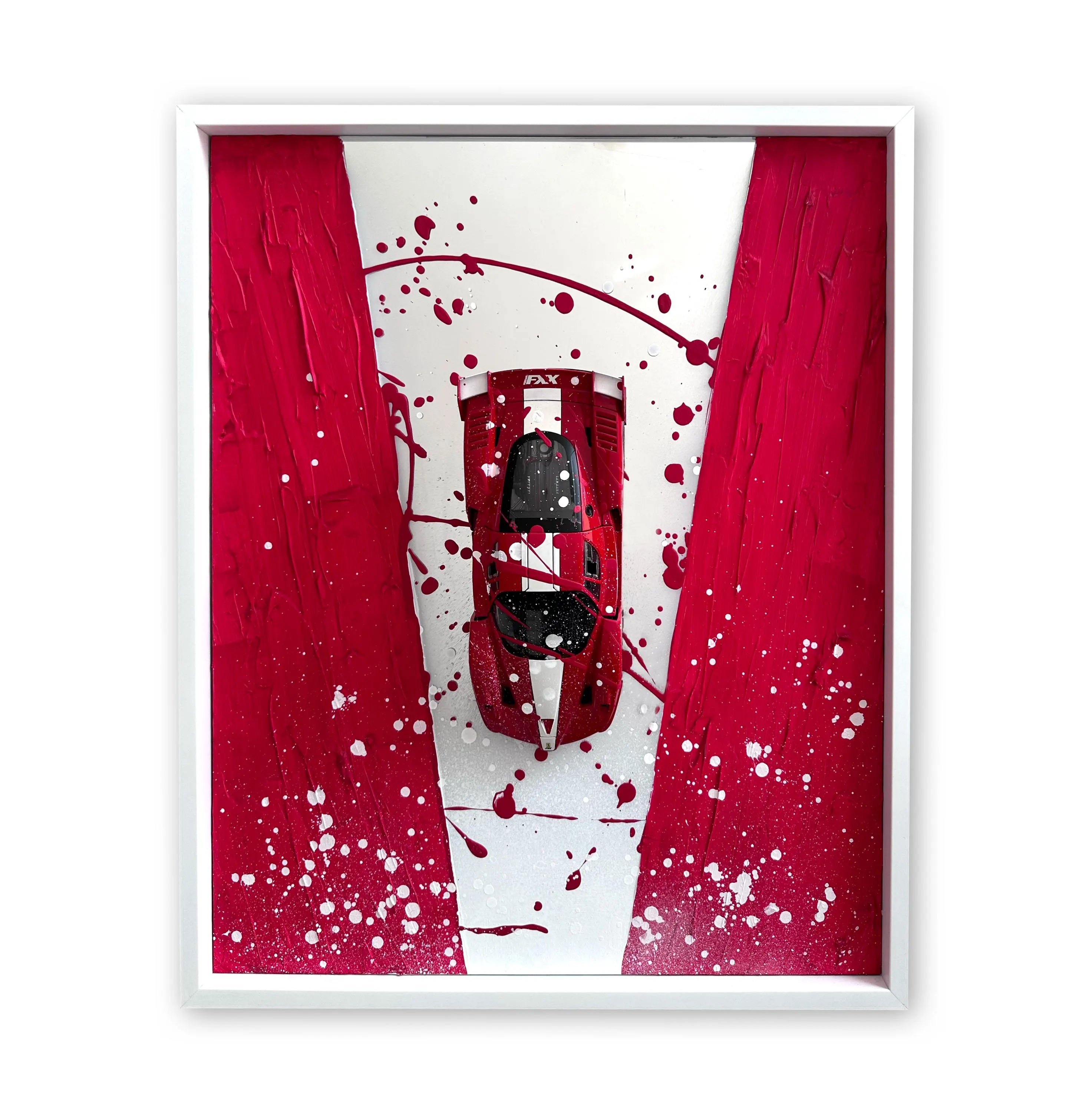 A hand-crafted mixed media artwork (58x68 cm) inspired by the raw energy of the Ferrari FXX
