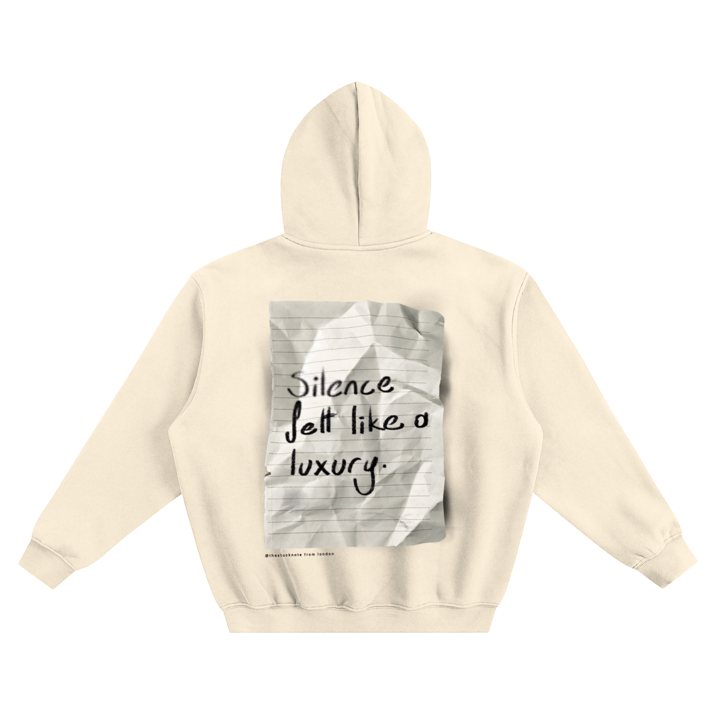 Crumpled paper. Handwritten words. Ink pressed with intention. What you see on this garment was first built manually — written, layered, arranged, and shaped by hand before becoming a final print.